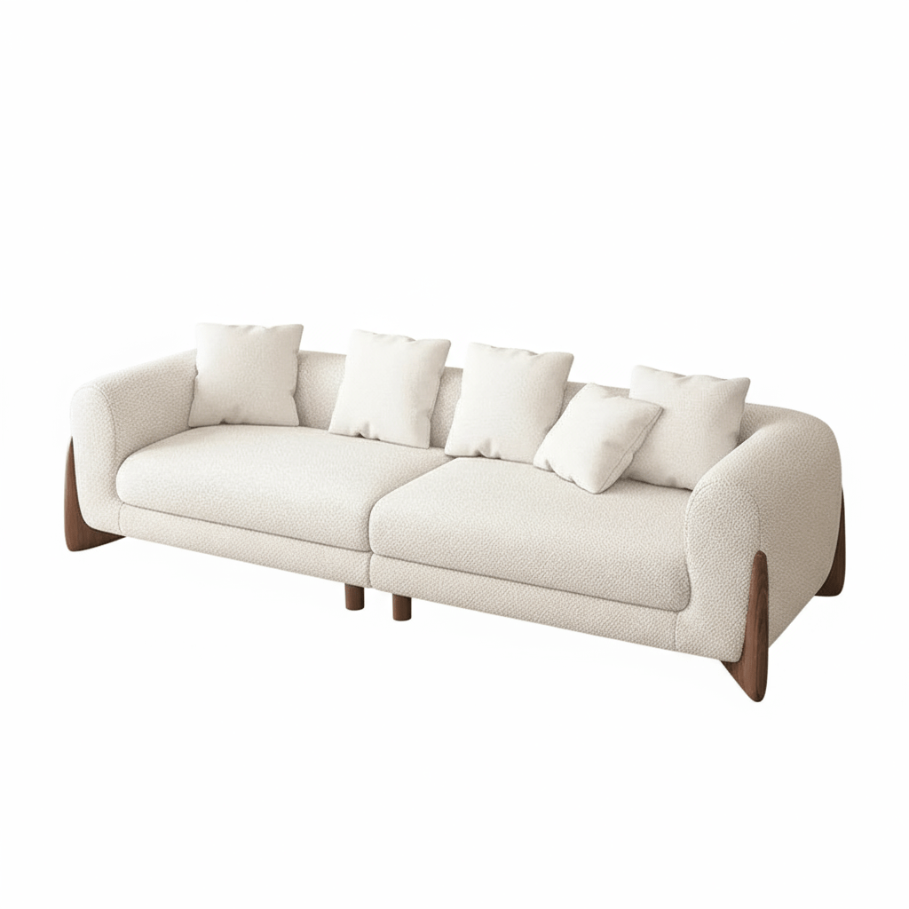 Built on a solid wood frame, each sofa is engineered for durability, long-term stability, and everyday performance. The internal wooden structure provides strength while allowing each design to maintain slim profiles, soft edges, and precise proportions. In several pieces, exposed wooden elements are subtly integrated into the base, arm panels, or side detailing, adding warmth and material richness to the upholstered form.