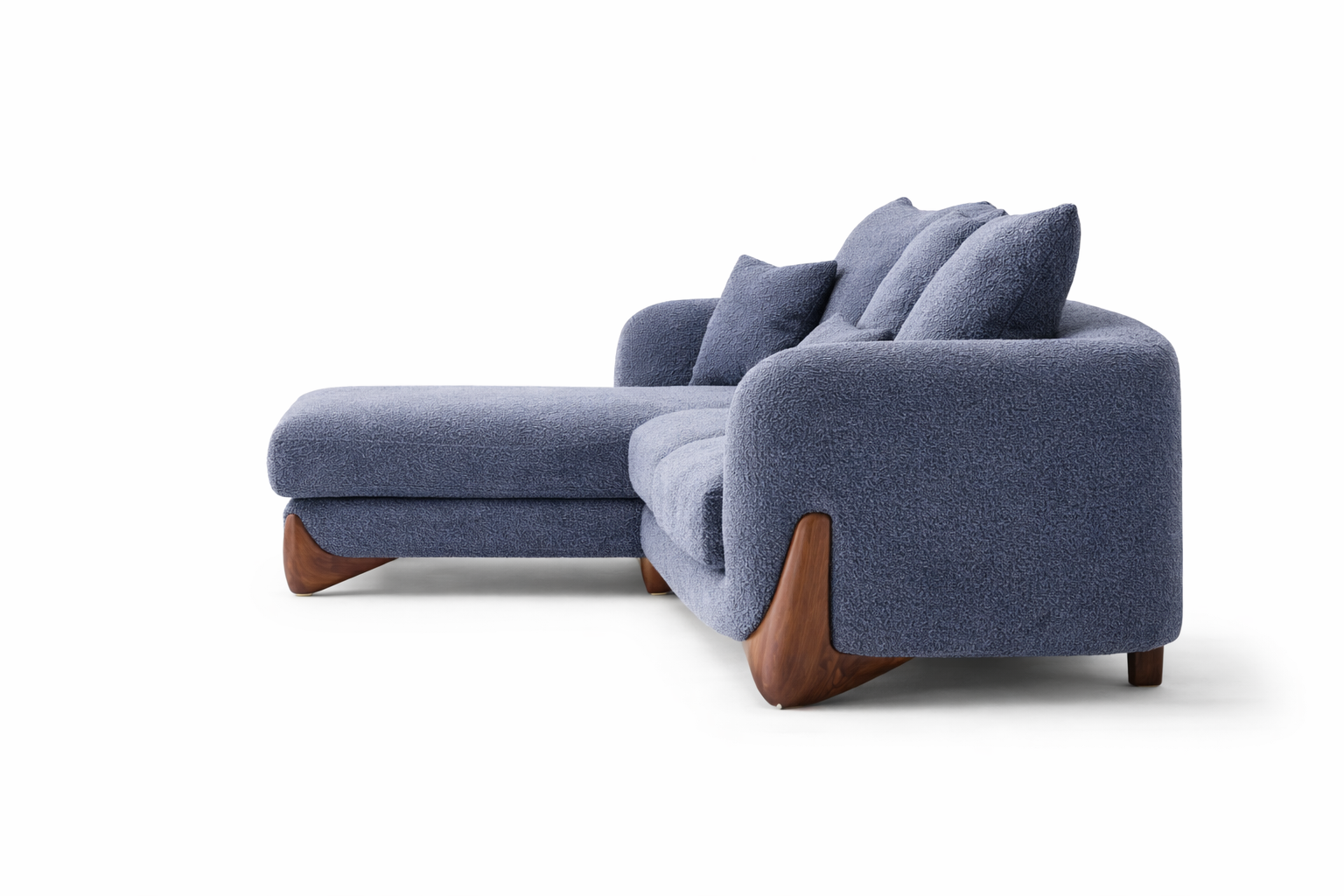Fabric upholstery adds warmth and softness to the collection while also contributing to its contemporary visual appeal. Smooth finishes, textured fabrics, and tailored upholstery detailing help each sectional maintain a refined presence while remaining practical for everyday living.