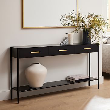 The designs in this collection vary from clean, minimal profiles to more expressive forms featuring curved edges, fluted details, and architectural bases. This diversity allows the consoles to complement a wide range of interior styles, from modern and contemporary to transitional spaces.