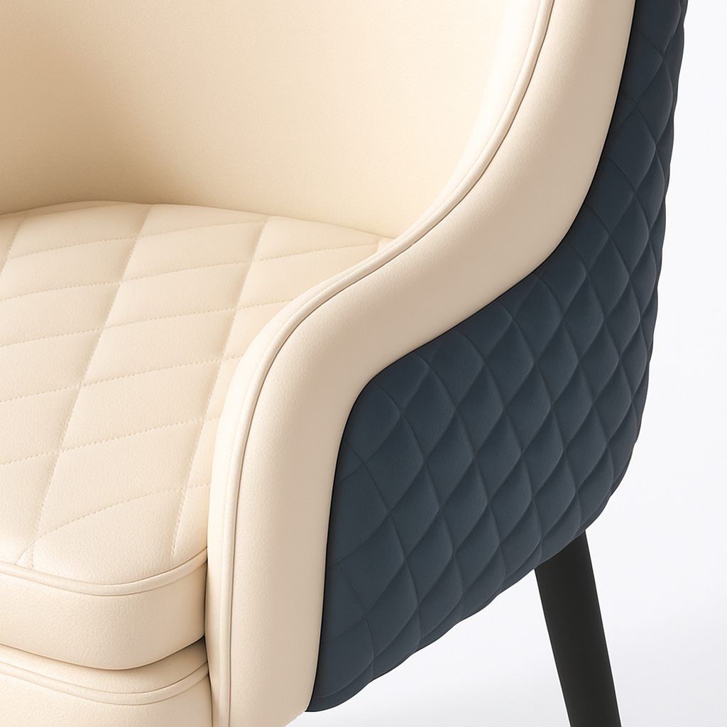 The upholstered surfaces highlight clean tailoring, quilted details, and refined edge finishing, while the wooden components are protected with a PU paint finish for enhanced durability, smooth texture, and long-lasting visual appeal. With their balanced combination of design sophistication, material quality, and seating comfort, these double back dining chairs are created to elevate dining spaces with a strong contemporary presence.