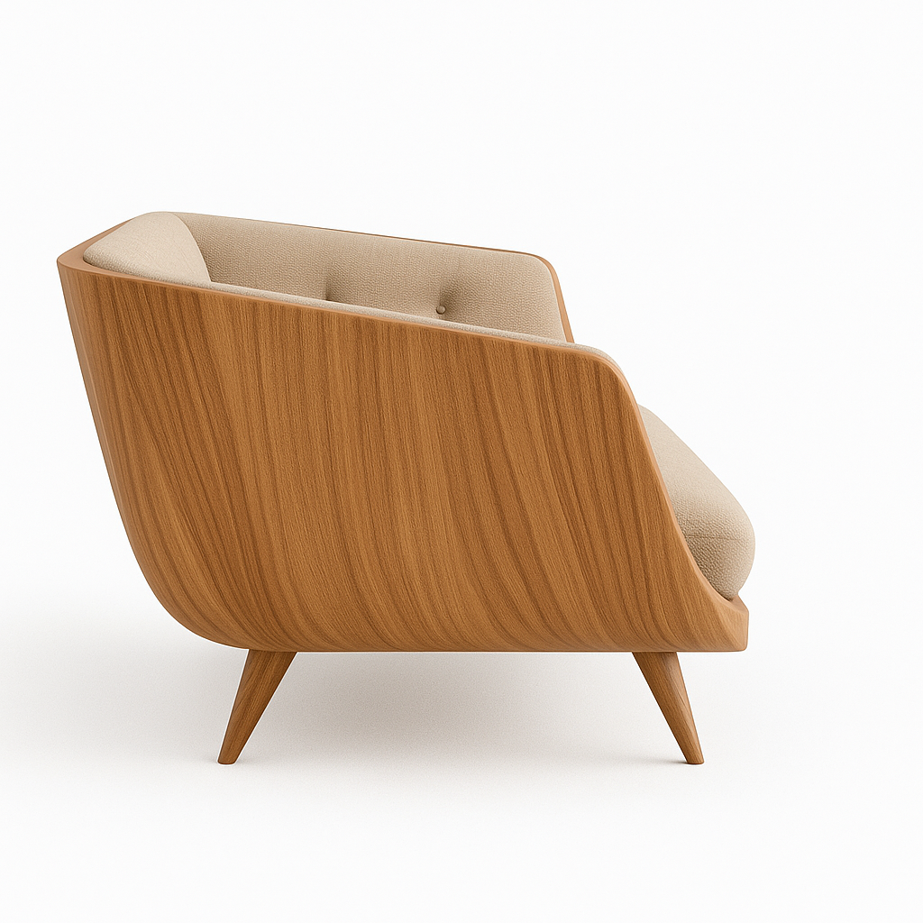 The use of solid teak wood for both frame and legs gives the collection exceptional durability, stability, and long-term structural performance. Carefully shaped wooden elements remain visually prominent in every design—whether expressed through open side frames, flowing arm supports, curved outer shells, or clean linear bases—allowing the natural grain and craftsmanship of teak to become an essential part of the aesthetic.
