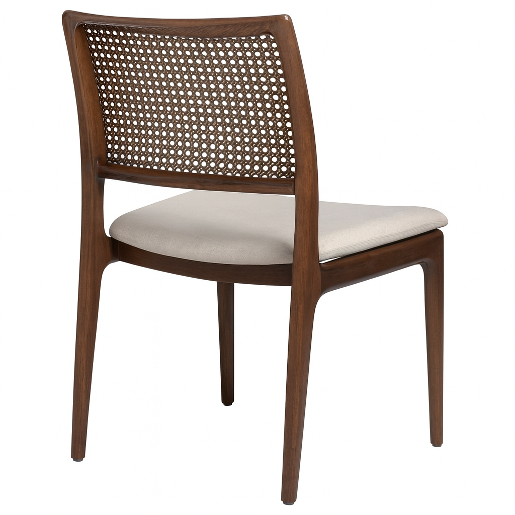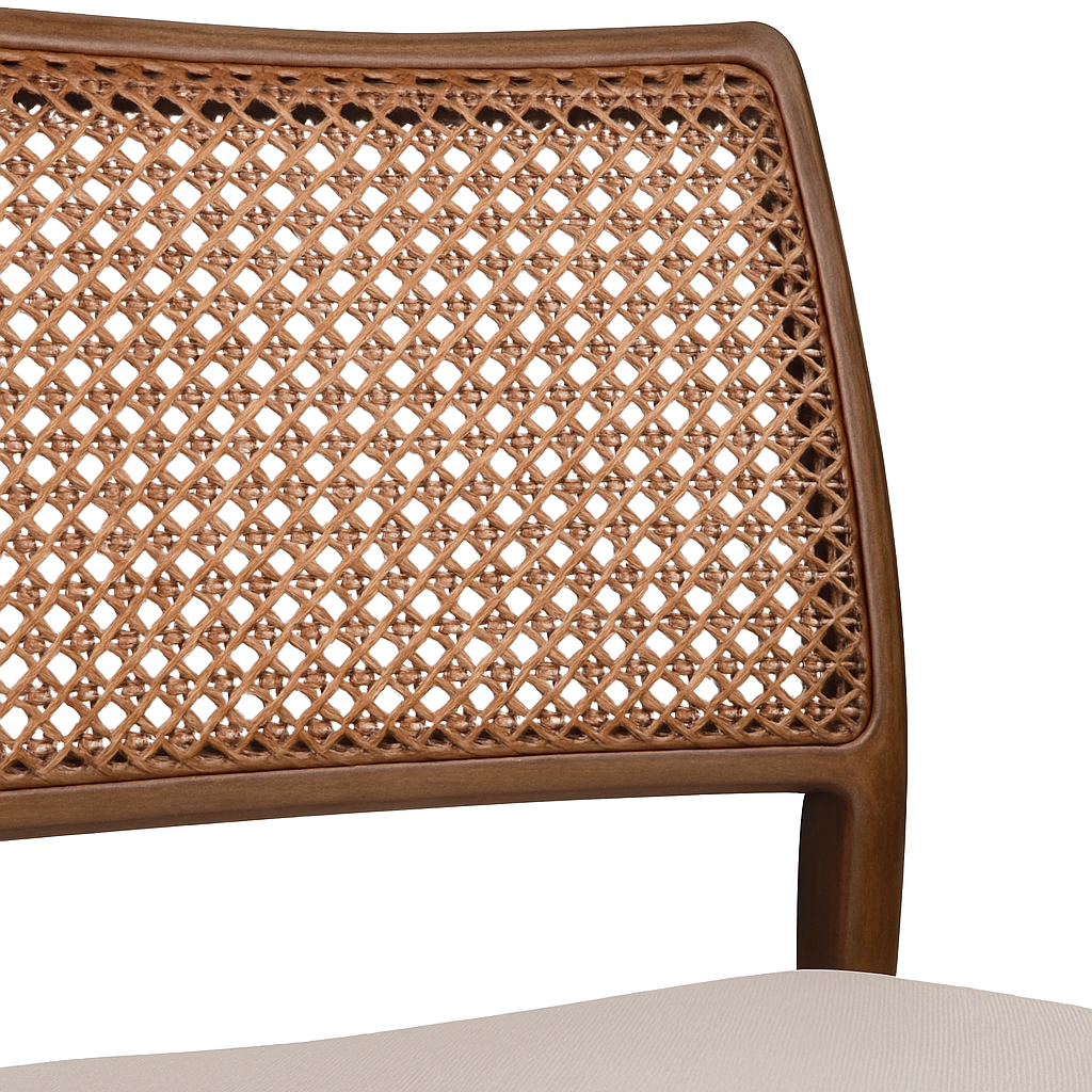 Built from premium teak wood, the chairs offer exceptional durability, natural strength, and a rich grain character that enhances their visual appeal. The incorporation of handwoven cane work adds texture, breathability, and artisanal detail, giving each piece a light and sophisticated presence.