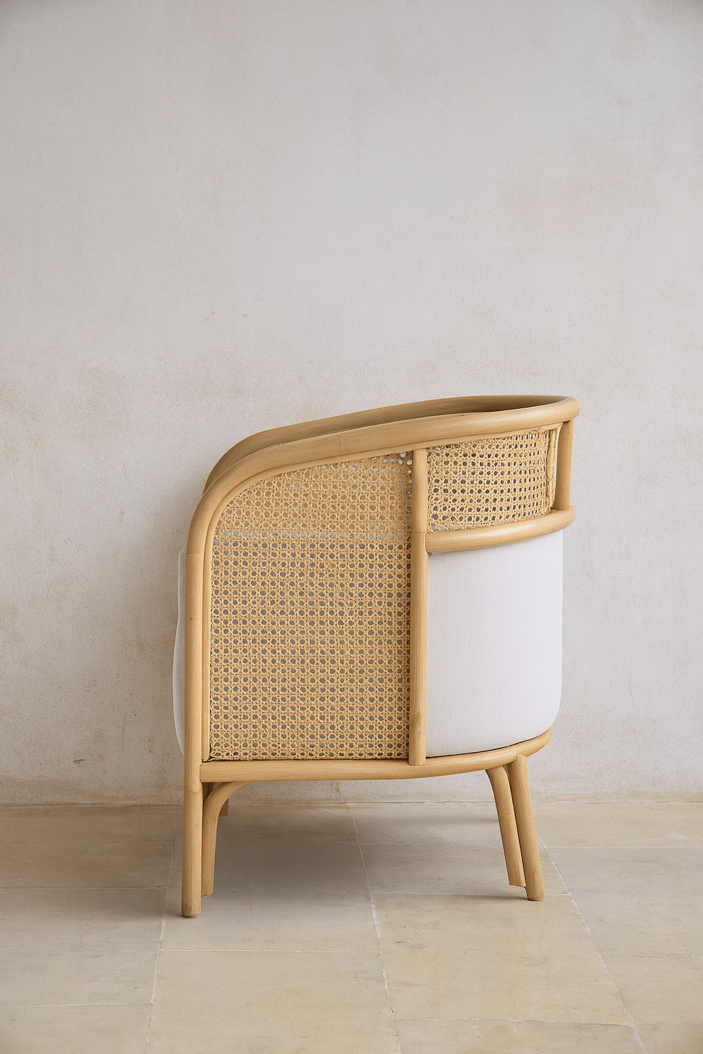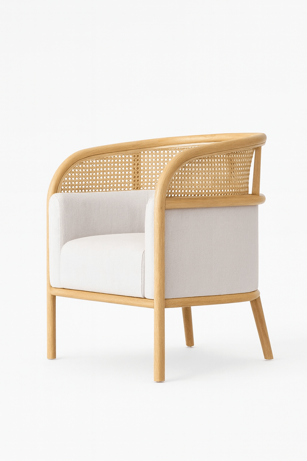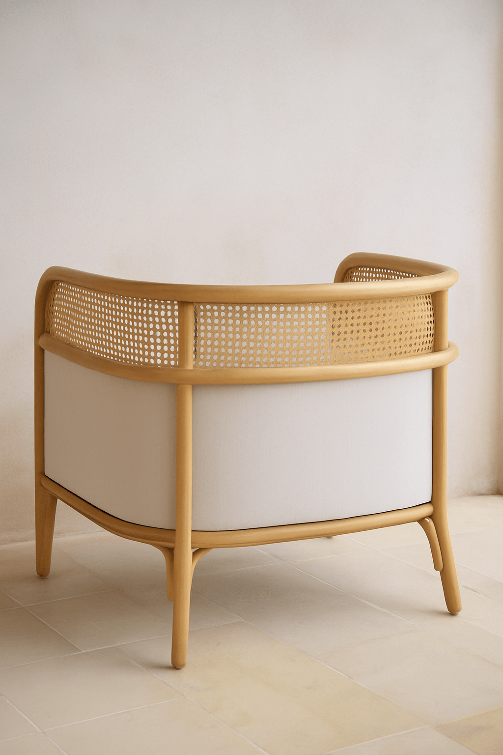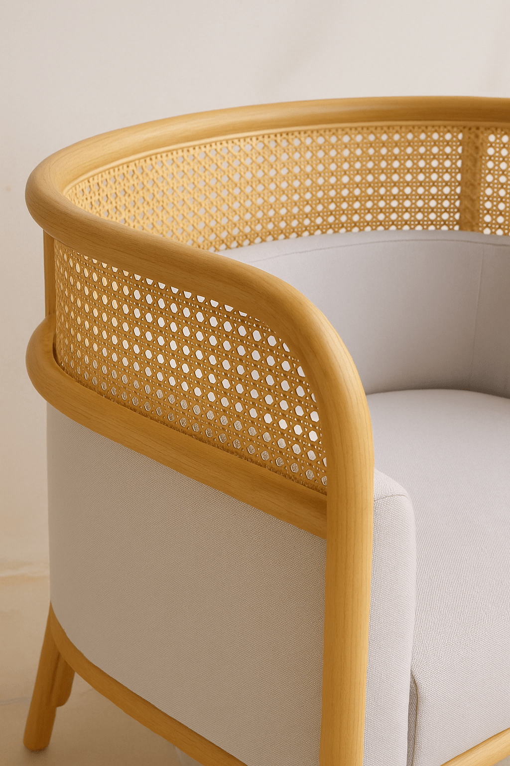 The woven natural cane detailing adds texture, breathability, and artisanal character. Inspired by classic craftsmanship yet styled with contemporary lines, the cane brings lightness and elegance to the structure — creating a chair that feels both grounded and airy.