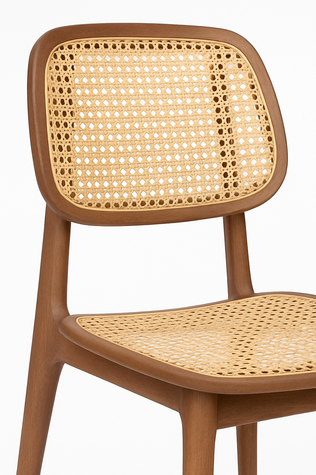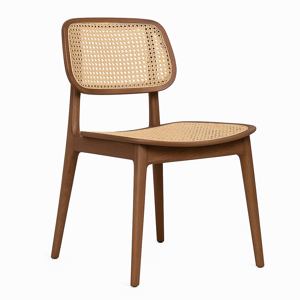 Built from premium teak wood, the chairs offer exceptional durability, natural strength, and a rich grain character that enhances their visual appeal. The incorporation of handwoven cane work adds texture, breathability, and artisanal detail, giving each piece a light and sophisticated presence.
