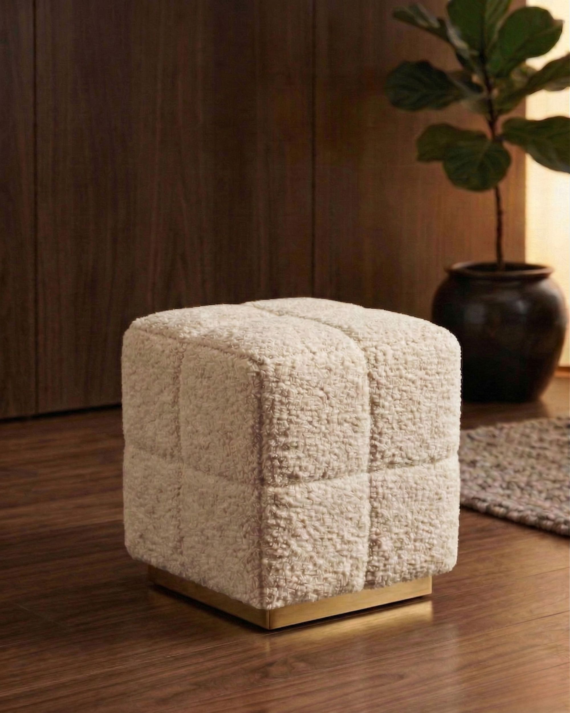 Upholstered in premium-quality fabrics, each ottoman showcases rich textures, refined stitching, and tailored finishes—from smooth minimal surfaces to tufted, fluted, and paneled designs. Select pieces are further enhanced with metallic accents or base details, adding a touch of luxury and visual contrast.