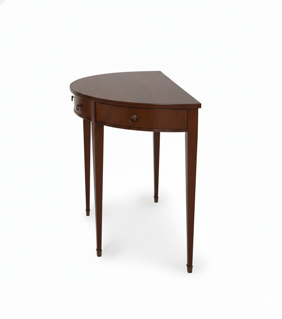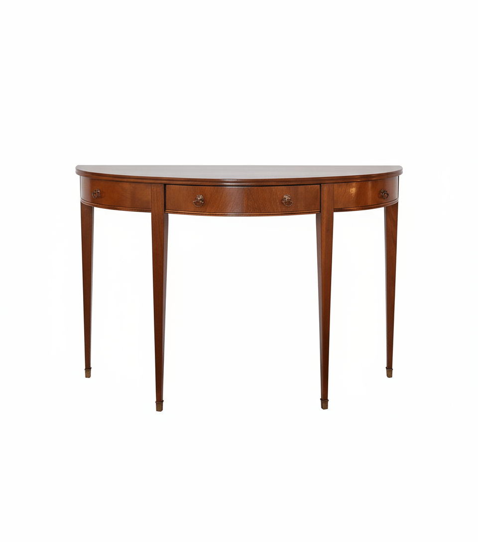 The silhouettes vary from clean rectangular forms to softly curved and semi-circular profiles, adding visual interest while maintaining functionality. Integrated drawers, lower shelves, and spacious tops provide practical storage and display options, making these consoles as useful as they are beautiful.