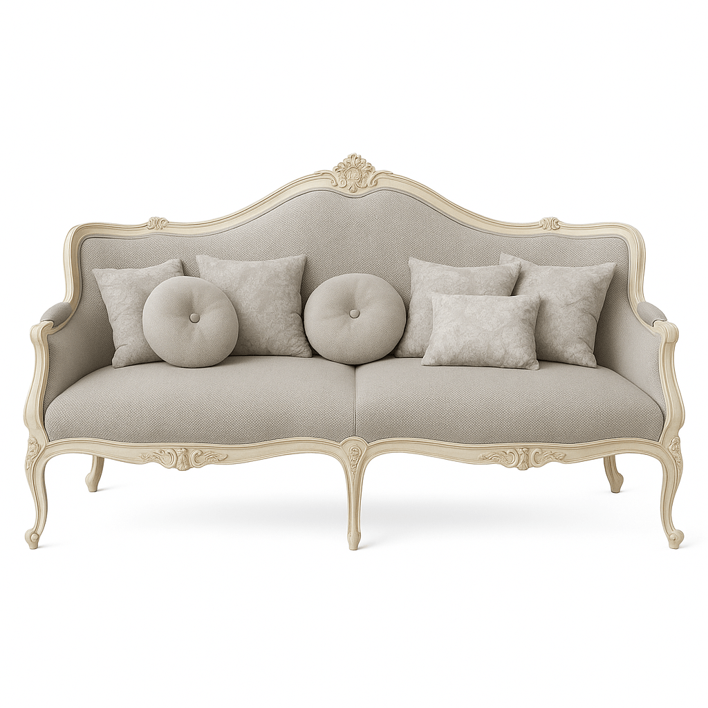 Comfort is equally central to the design. Deep seating proportions, supportive backrests, and generously cushioned seats are developed to provide a relaxed and comfortable seating experience suited for formal living spaces as well as elegant hospitality interiors. Upholstered surfaces are tailored to complement the carved frame, balancing softness with visual sophistication, while accent cushions further enhance comfort and decorative appeal.