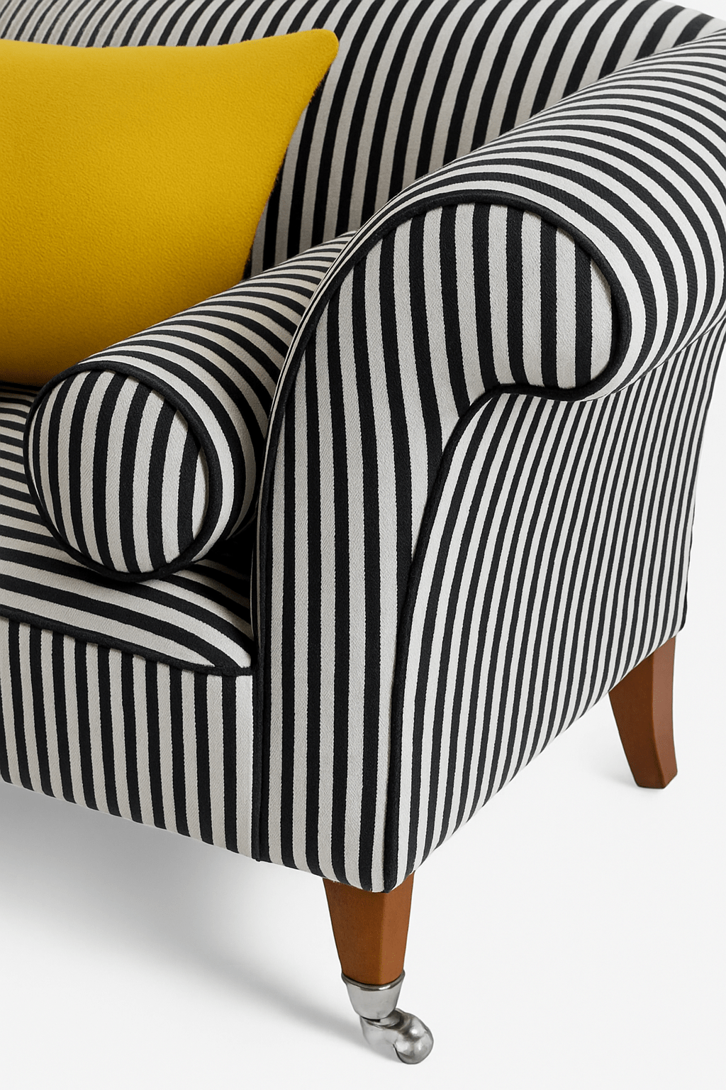 Supporting the upholstery is a robust internal framework, ensuring long-lasting strength and stability. Every element—from the precision of the joinery to the finish of the legs—speaks to a commitment to quality and detail.