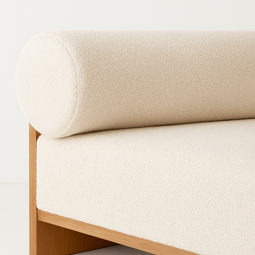 Upholstered in premium fabrics, the collection emphasizes tactile comfort and understated elegance. Soft bouclé, finely woven textiles, and smooth fabric finishes are chosen for their richness and resilience.