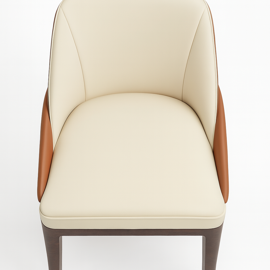 Each chair is built on a solid teak wood base, chosen for its strength, durability, and natural elegance. The back structure is crafted using precision-shaped plywood, allowing the double-back profile to achieve smooth curves, layered contours, and ergonomic support. Generous PU foam cushioning is integrated into the seat and backrest, providing a soft yet supportive seating experience suited for extended dining comfort.