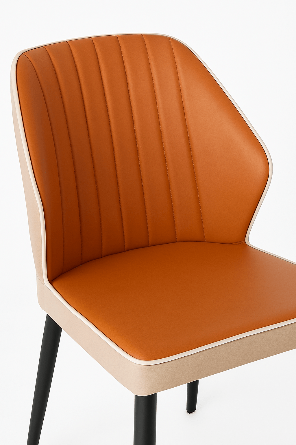 The Leatherite Dining Chairs collection is designed to bring together modern elegance, refined detailing, and practical dining comfort. Across the collection, the chairs share a contemporary design language defined by clean silhouettes, softly sculpted backs, integrated side support, and tailored upholstery patterns. Some designs feature curved wrap-around forms, while others introduce stitched channels, quilted surfaces, or subtle geometric detailing, creating variety within a unified premium aesthetic.